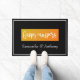 Campers felizes RV ou tapete de porta de cabina, retângulo amarelo alaranjado com guião branco sobre fundo preto. Apenas personalize-o com qualquer nome ou nomes usando o botão "personalizar".