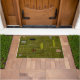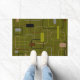 Esta porta tem uma design moderna do século médio de retângulos em verde, cinza, marrom e preto.
