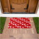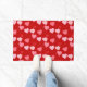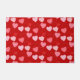 Um padrão de conversas ubíquas sobre doces corta a leitura de "Love You", "Be Mine", "Kiss Me", "XOXO" e "Hug" em vermelho, rosa e rosa em cascata sobre um fundo vermelho Namorados