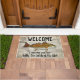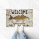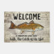 BEM-VINDOS - Um pescador vive aqui com a captura da sua vida! Um belo tapete de pesca, bem-vindo, com um paletó. Este tapete apresenta um cantarilho sobre fundo rústico, excelente para a cabana, trailer ou casa. Veja na minha loja outras espécies de peixes com a mesma design.