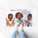 Um trio feminino afro-americano vestido de branco com faixas coloridas individuais canta louvores para as festas de fim de ano, fazendo um barulho alegre com as mãos, voz e instrumentação.