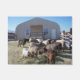 Caprinos e ovelhas se reúnem em frente ao celeiro para desfrutar sua alimentação de inverno de feno nesta pacífica Fazenda Nevada.