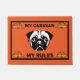 Caravan Pug Dog Door Mat. Um reboque de caravana, viagem, camper, torre ou campista é um reboque rebocado atrás de um veículo rodoviário para proporcionar um lugar para dormir mais confortável e protegido do que uma tenda (embora haja tendas de reboque dobradas)[1][2]. Permite que as pessoas tenham a sua própria casa numa viagem ou férias, sem depender de um motel ou hotel, e que permaneçam em locais onde não há qualquer lugar disponível ... No entanto, em alguns países, os campistas estão limitados a locais designados para os quais são pagas taxas.