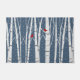 Par de cardeais vermelhos sentados em uma árvore com flocos de neve sobre fundo azul estrelado.