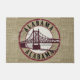 Bem-vindos convidados com talento sulista e vintage! Esta Porta do Carimbo da Ponte Retro Alabama apresenta um fundo rústico falso em burlap e um selo redondo estilo viagem mostrando a icônica Mobile, ponte Alabama em ousada silhueta. Uma mistura perfeita de vibrações nostálgicas de viagem rodoviária e estilo aconchegante de varanda, esta única porta adiciona um olhar quente e vivo a qualquer porta. Ideal para nativos do Alabama, viajantes ou fãs da decoração da Americana.