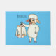 Esta ovelha feliz tem sua própria jaqueta de lã! Desenhado no estilo de desenho animado.