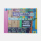 Bem-vindos à nossa ilha - propriedade privada. Realmente. Um cartaz de madeira rústico pintado e colorido, com instruções sobre o aluguel de kayak e de pranchas, o que fazer com a carga e onde estacionar. Um tema tão excelente da praia!