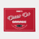 Garagem do pai ou qualquer tipo de garagem de hotrod com script de garagem retrorreflectora branca em fundo vermelho. Use apenas a opção personalizar esta modelo para mudar o texto para se adequar.