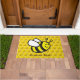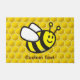 Cartoon voador de abelha sorridente sobre fundo de colmeia de abelha sem costura.