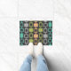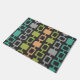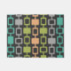 Um simples padrão minimalista inspirado na abstrato art da era atômica dos anos 1950, com colunas de quadrados arredondados em laranja, verde-carreso, turquesa e cinza.