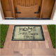 Este assustador tapete de boas-vindas ao estilo Halloween apresenta um fundo design concreto com quadros pretos. A frase no tapete diz, "Home Sweet Haunted Home" impresso em uma fonte negra e sinistra. É uma peça sobre a típica frase "Home Sweet Home". O concreto parece sujo, vestido e assustador. É uma maneira simples e prática de adicionar um toque assustador ou assustador à sua casa durante o Halloween e em qualquer época do ano.