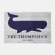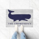 Porta de saída para férias de baleia Marinho azul náutico Náutica Blue White Family Name Rustic Whale Doormat. Personalize esta praia náutica ou casa de lago da Nova Inglaterra com seu nome de família e ano estabelecidos. Casa de férias de algodão tapete um popular tapete de madeiras algemadas, madeiras algemadas, lavadas em branco, parece com um pré-filhote Nova Inglaterra, Nantucket, ou baleia de Martha Vineyard. Encomendas correspondentes disponíveis em truullc@gmail.com