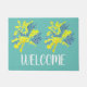 Boas-vindas a um tapete com flor amarela colorida mimosa original de arte australiana, ilustrado pelo artista Sacha Grossel, apresentando estas lindas flores amarelas em um fundo azul simples. Colorida e vibrante. Perfeito para um amante da natureza ou da vida selvagem. Souvenir australiano.