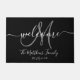 Design de monograma preto e branco personalizado e cinza de com noiva, sobrenome de noiva e noiva e data de casamento em fundo preto. Faz um presente único e excelente para recém-casados. Excelente para uma nova casa juntos. Personalize com o seu nome, data e cores iniciais e de casamento. Elke Clarke©