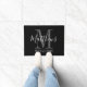 Escrito personalizado moderno, escrito à mão, negrito, preto e branco e design de monograma de cinza com noiva e sobrenome de noiva e noivos e inicial sobre fundo preto. Faz um presente único e excelente para recém-casados. Excelente para uma nova casa juntos. Personalizar com o nome do sobrenome, inicial do monograma e cores. Elke Clarke©