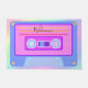 Este design de vaporwave tem um cassete de áudio rosa e roxo, e uma mensagem de boas-vindas.