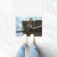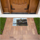 Um Kestrel Americano senta num galho. Por trás está o nó celta de pedra esculpido.