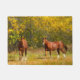 Dois cavalos da castanha contra um fundo dourado do folhagem de outono fazem a isto uma esteira de porta home verdadeiramente especial.