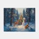 Tapete Cena da Árvore de Natal Fofo Deer Fawn Snowman