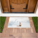 Personalize seu nome neste capacho de férias chique com uma raposa em um fundo de floresta de cena de inverno.