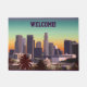 Esta ilustração colorida do vetor caracteriza uma skyline lindo dominada por arranha-céus e por palmeiras de Los Angeles do centro com um por do sol californiano bonito no fundo.