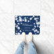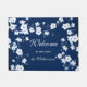 Lindas flores de cerejeira brancas em um fundo azul marinho. Com um texto de boas-vindas personalizado.