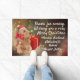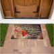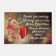 Artsy, uma porta personalizada e única para o tema do inverno, apresentando uma ilustração de Espanhol de Cocker Cuta, sentada num chapéu vermelho e fita em frente a uma caixa de presente vermelha, encarando a queda de neve na luz, dando um tranquilo, sereno, sentimento festivo de Natal e texto personalizado.