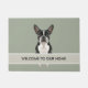 Aqui está um lindo tapete de boas-vindas de Boston Terrier para a entrada de sua casa com um modelo de banner de mensagem de boas-vindas que você pode personalizar com seu próprio texto ou mensagem personalizada.