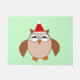 Esta fantástica porta mostra um desenho engraçado de uma coruja de Natal com olhos sonolentos, um pequeno bico laranja e pequenos pés laranja bonitos. A coruja é marrom com uma barriga de creme e está vestindo um chapéu de Papai Noel vermelho e branco pronto para o Natal.