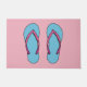 Uma ilustração de um par de chinelos de praia cor-de-rosa e azuis. É verão! O vamos faz uma pausa e diverte-te debaixo do sol. Você não está animado em preparar suas coisas para as férias? Não esqueça seus chinelos.