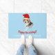 TAPETE CHRISTMAS BEAGLE PUPPY EM RED XMAS SANTA HAT BLUE