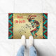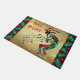 Personalize este Único "Um dos Tipos" de Natal Kokopelli Doormat! Ele apresenta um Kokopelli tocando flauta com notas musicais e dançando em um Dourado fundo de Natal com flocos de neve, cercado por turquesa, bordas laranja e negras e as palavras uplifantes... "Paz na Terra"! Design De Arte Original Pelo Artista Kerry Miller.