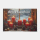 Pretty Door Mat with a view outside at the Winter landscape, perfect to dress up your home for Christmas. Beautiful bright red, lit candles on a window sill with pine cones, snow and red berries.