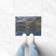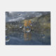 Uma renderização de foco curto de um dia escuro e chuvoso em uma colina de montanha norte. Ao fundo estão colinas castanho-cinza e um salgueiro com folhas amarelas de queda numa ilha num lago de seda. No primeiro plano estão gotas de chuva congeladas no ar, com uma no meio trazendo o salgueiro do ouro e seu reflexo para um foco mais acentuado.