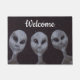 Um lápis colorido de três Alienígenas de Cinza ETs contra um céu estrelado e preto.