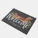 Esta única porta vermelha do que Dachshund é uma divertida adição à sua porta frontal. O design apresenta uma ilustração de dachshund de aquarela fofinha, combinada com flores silvestres e uma fonte de script de tendência. Perfeito para primavera ou decoração exterior de verão. Personalize facilmente com seu nome de família e ano.