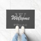 Nome do Script Monograma Elegante da cinza, Legal Porta de Boas-Vindas do Casamento Chic. Monograma branco e cinza personalizado com sobrenome de noiva e noiva e data estabelecida em fundo de cinza. Crie um dom único para recém-casados. Adorável pela nova casa deles juntos. Clique em personalizar este modelo para personalizá-lo rápida e facilmente. Navios no mundo todo rápido. Nome Elegante do Monograma da cinza, Legal Porormat de Boas-vindas. Criado pelo artista RjFxx *Todos os direitos reservados. #WelcomeDoormat #NewlywedsGift #ZazzleMade