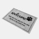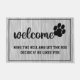 Cinza de madeira Pata bem-vinda citações engraçadas vintage Doormat. "Toque o sino e deixe o cachorro decidir se ele gosta de você", cita Doormat. Uma porta única e engraçada para amantes de cães, amantes de animais de estimação. A citação está na fonte vintage e bem-vinda está na fonte do script com pata.