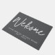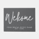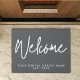 Porta de boas-vindas minimalista moderna em cinzas e branco com nome de empresa personalizado.