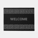 Elegante Cinza Silver Padrão Grego no tapete de porta Black Welcome. O texto de boas-vindas pode ser personalizado.