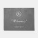 tapete compre de barbeiro com logotipo falso metálico de tesoura prateada e roteiro de barbeiro em couro de cinza escura