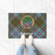 Crachá da crista Clan Anderson rodeado por uma correia e fivela sobre fundo tartano. Texto personalizado.