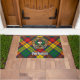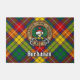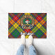 Crachá da crista Clan Buchanan rodeado por uma correia e fivela sobre fundo tartano. Custom Text.