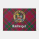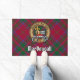 Crachá da crista Clan MacDougall rodeado por uma correia e fivela sobre fundo tartano. Custom Text.