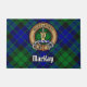 Crachá da crista Clan MacKay rodeado por uma correia e fivela sobre fundo tartano. Custom Text.