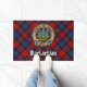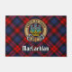 Crachá da crista Clan MacLachlan cercado por uma correia e fivela sobre fundo tartano. Custom Text.