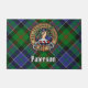 Crachá da crista Clan Paterson cercado por uma correia e fivela sobre fundo tartano. Custom Text.