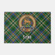 Crachá da crista Clan Scott rodeado por uma correia e fivela sobre fundo de tartã verde. Texto personalizado.