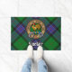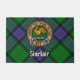 Crachá da crista de clã Sinclair rodeado por uma correia e fivela sobre o fundo de tartã de caça. Custom Text.