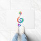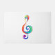 Chave musical desenhada a partir de camadas multicoloridas de cores do arco-íris sobre fundo branco.